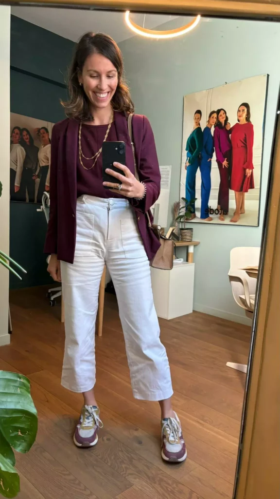 Une chaussure colorée ne complique pas une tenue : quand ta garde-robe est cohérente, elle peut même servir de rappel à tes couleurs de tops ou d’accessoires.