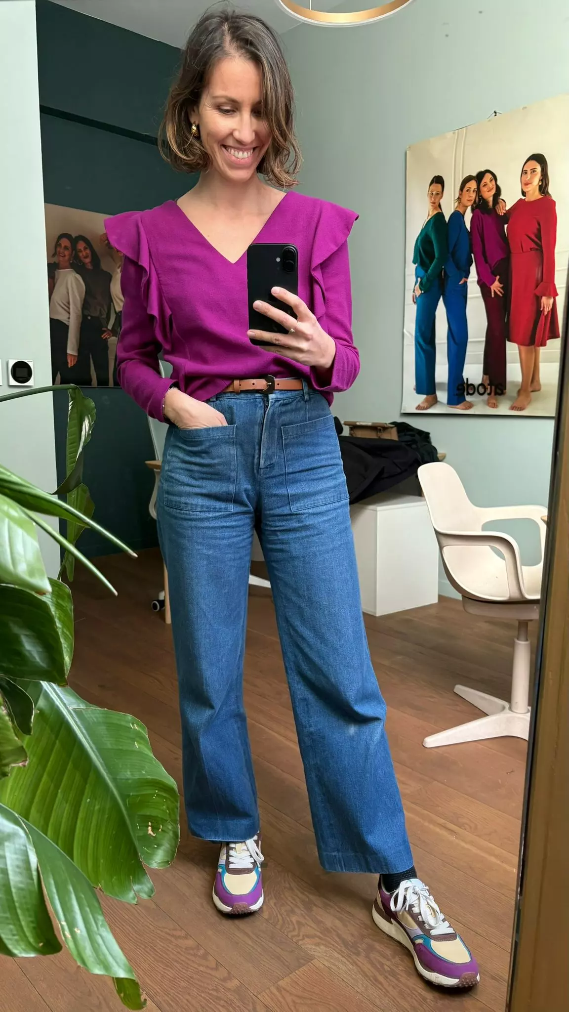 Une chaussure colorée ne complique pas une tenue : quand ta garde-robe est cohérente, elle peut même servir de rappel à tes couleurs de tops ou d’accessoires.