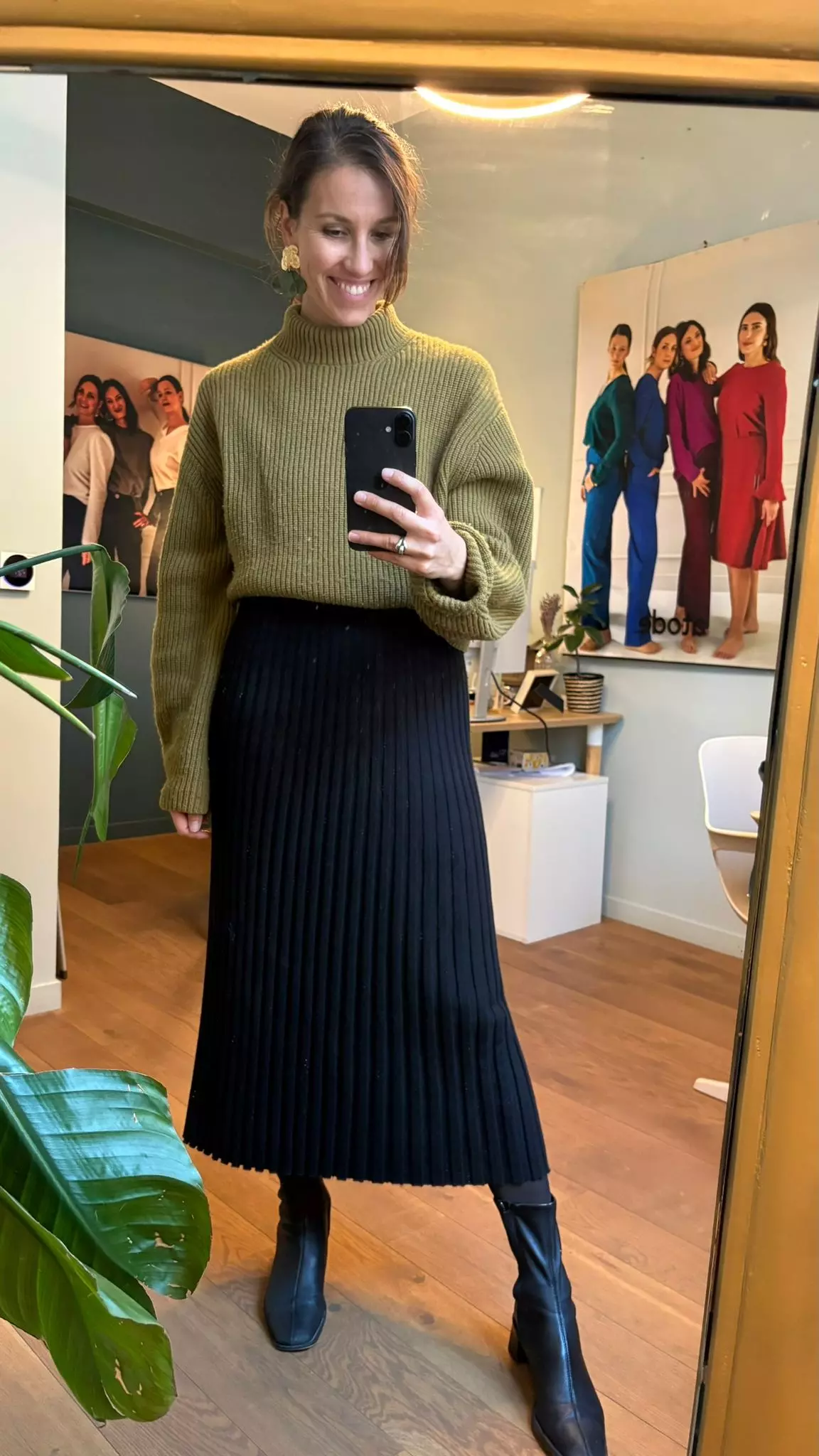 Si la couleur de ta chaussure est proche de celle de ton pantalon ou de ta jupe, la jambe paraît plus longue. L’œil lit une continuité. C’est particulièrement efficace avec des couleurs foncées.